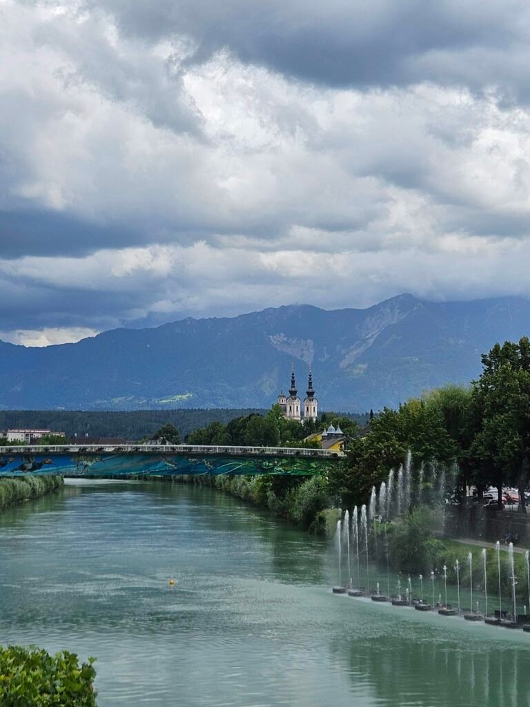Villach itsessään on viehättävä alppikaupunki lähellä Italian ja Slovenian rajaa, tunnettu kauniista luonnostaan. Villachissa saimme yllättyä, kun saavuimme sattumalta keskelle Kirchtag-juhlaa – Itävallan suurinta kansanjuhlaa. Koko kaupunki oli pukeutunut perinteisiin asuihin, torit täynnä musiikkia, tanssia ja paikallisia herkkuja