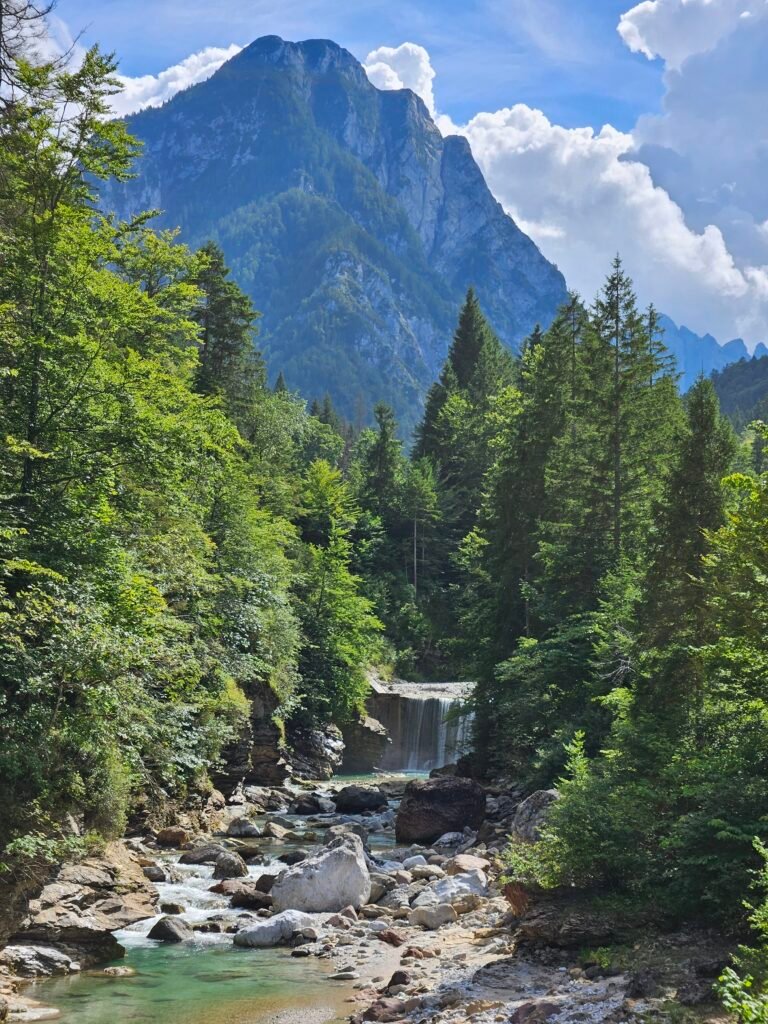 Saatiin herätä ehkä reissun yksissä kauniimmissa maisemissa Itävallassa korkealla vuoristossa – maisema oli kuin postikortti! Sieltä jatkoimme matkaa pitkin serpentiini teitä, turkoosia vettä ja toinen toistaan jylhempiä vuoria ihaillen kohti Slovenian rajalla sijaitsevaa Villachia.