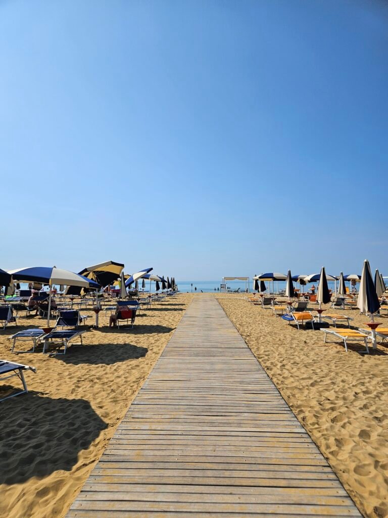 Rantapäivä Bibionen rannalla, jossa oli aivan älyttömän kirkasta vettä ja rantaa silmänkantamattomiin.